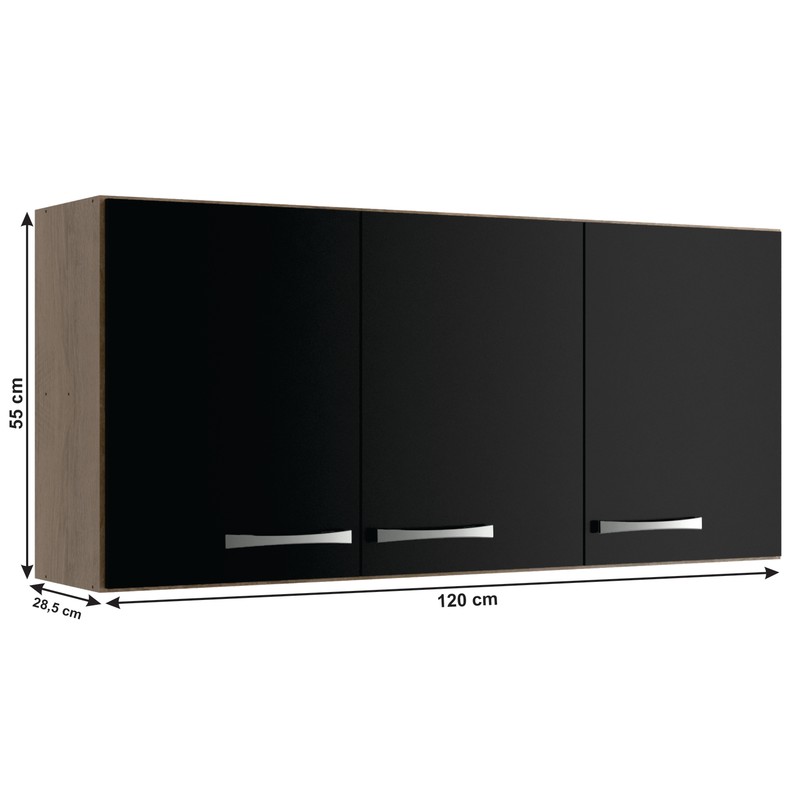 Armário de Cozinha 3 Portas Aéreo Suspenso Castanho/Preto