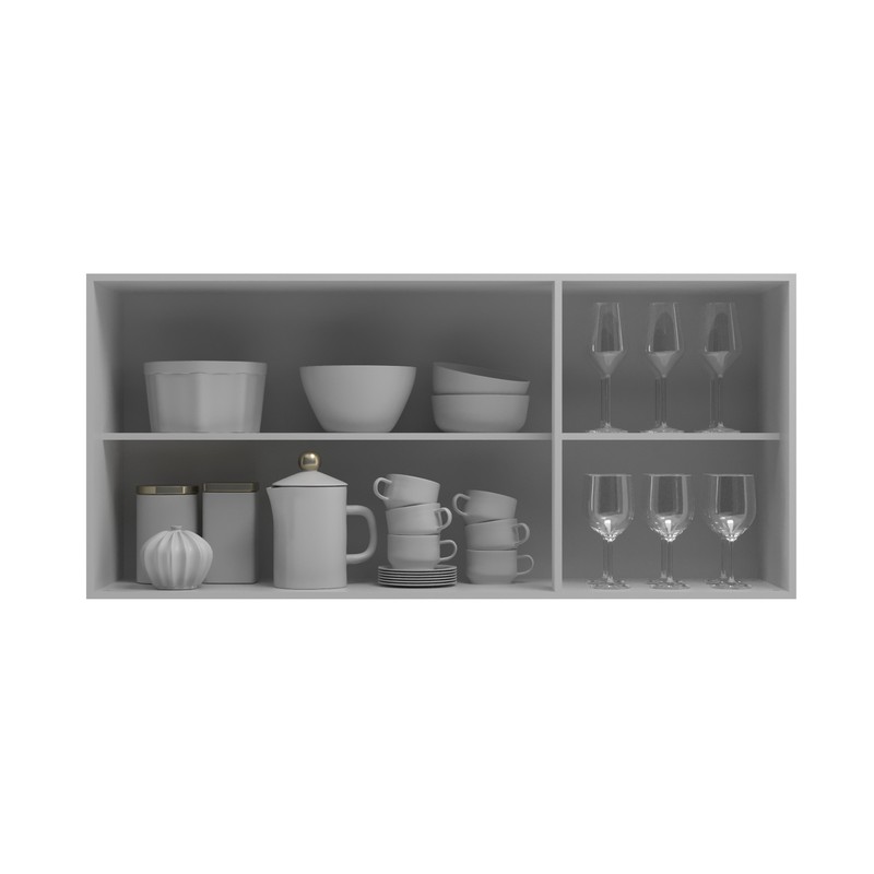O aéreo de cozinha é todo construido em MDP revestido com Finish Foil (FF).. Este móvel é projetado para otimizar o espaço e oferecer conveniência para o armazenamento de utensílios, mantimentos e outros itens essenciais da cozinha.