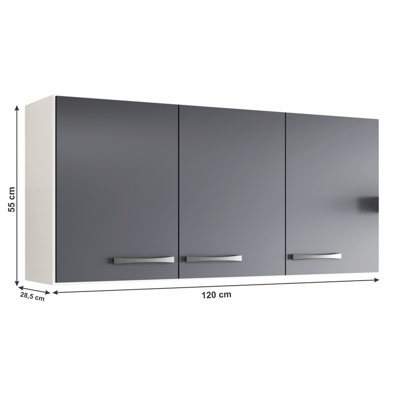 Armário de Cozinha Serviço 3 Portas Aéreo Branco/Cinza
