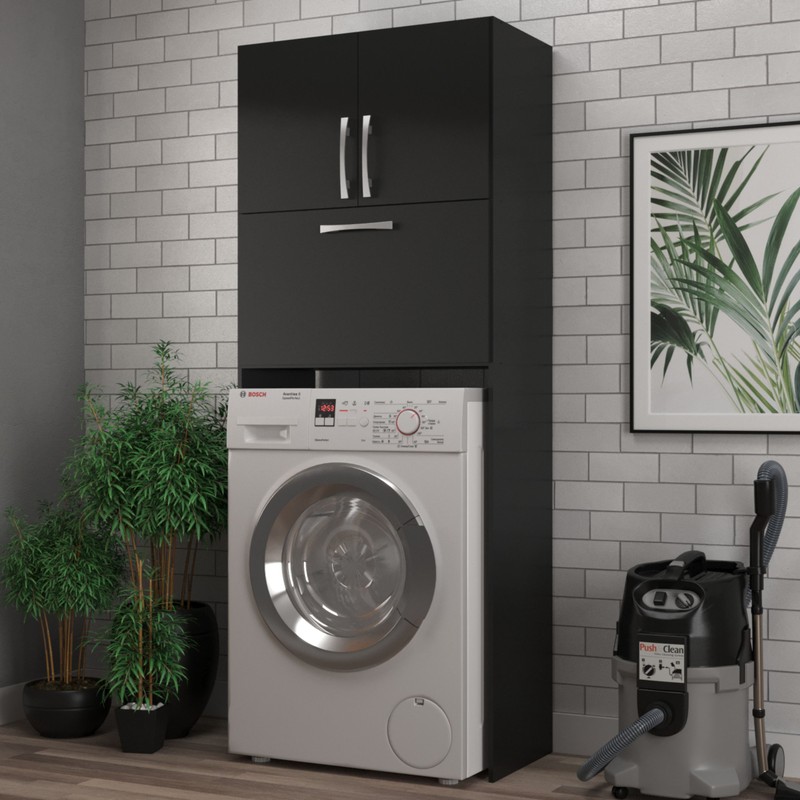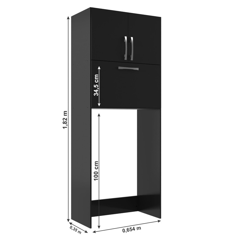 Armário Multiuso Lavanderia 3 Portas 2 Nichos Elite Preto