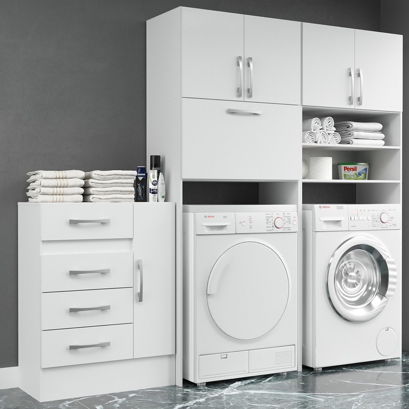 Quando falamos em Multiuso, entregamos além de um aparador para sua máquina de lavar ou secadora, armários e nichos amplos para a organização da sua lavanderia. Ele é feito 100 % em MDP e traz um ar de sofisticação ao seu ambiente. Neste kit você organiza todo o seu espaço.