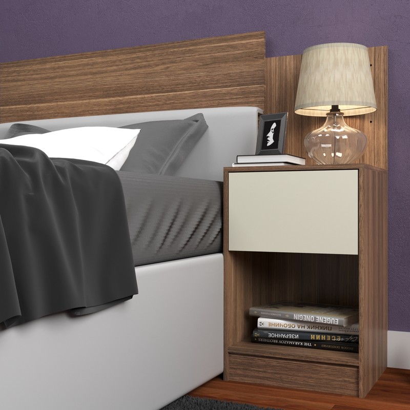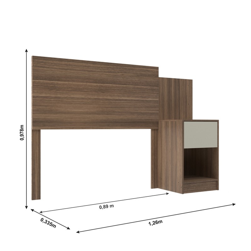 Cabeceira de Solteiro Altesa 1 Gavetas 1 Nichos Castanho/Off