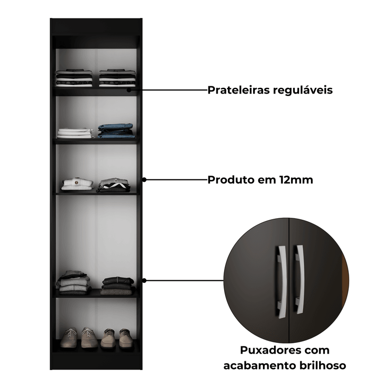 Guarda-Roupa Multiuso Solteiro Compact Preto - Direto Sim
