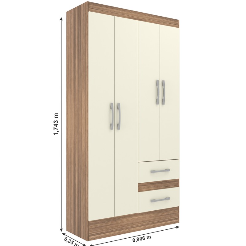 O Guarda-Roupa 4 Portas é o ideal para você que busca conseguir organizar as sua roupas e objetos. Possui corrediça e dobradiças de metal, puxador plástico e cabideiro para melhor organização. São 4 nichos mais cabideiro para deixar tudo do seu jeitinho. As 2 gavetas vem de encontro para melhor organizar suas roupas intimas e outros acessórios.