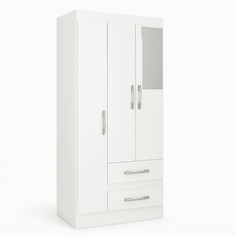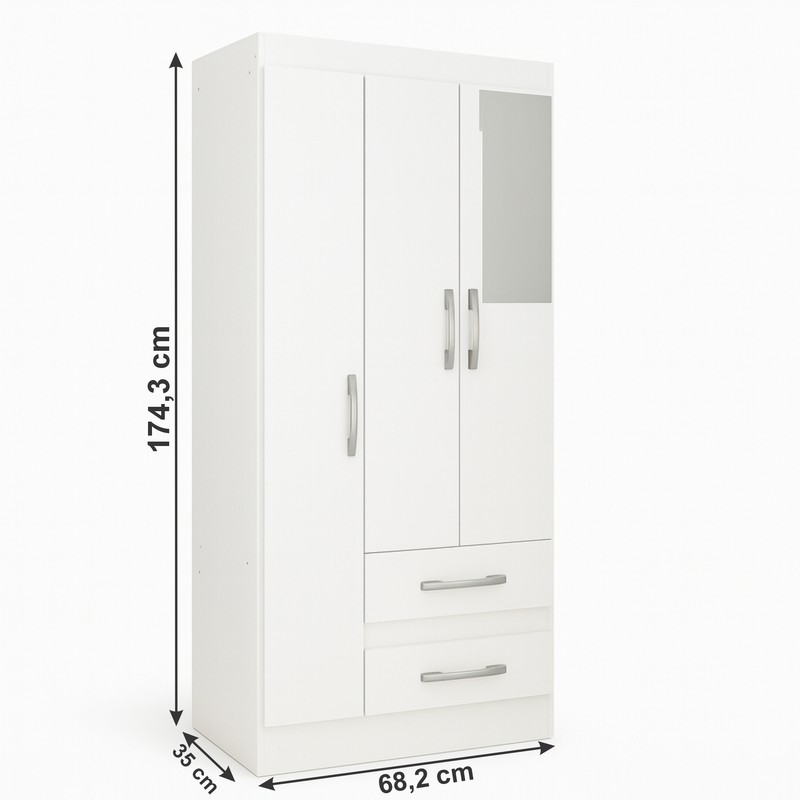 O Guarda-Roupa 3 Portas é o compacto que você busca para conseguir organizar as sua roupas e objetos. Possui corrediça e dobradiças de metal, puxador plástico e cabideiro para melhor organização. São 4 nichos mais cabideiro para deixar tudo do seu jeitinho. As 2 gavetas vem de encontro para melhor organizar roupas intimas e outros acessórios. Inclui 1 Espelho 50x17,5cm