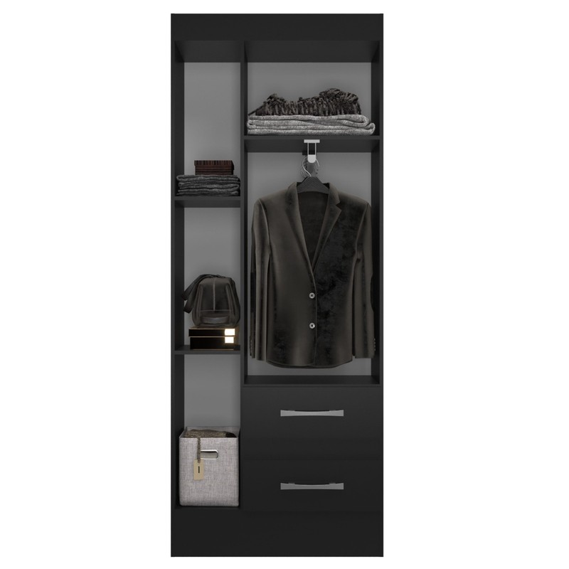 Guarda-Roupa Solteiro Nobre 3 Portas 2 Gavetas - Preto