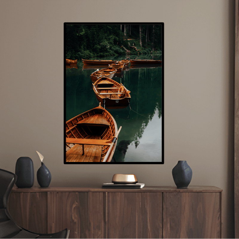 Quadro Decorativo Natureza Calma Barcos No Lago 70x50